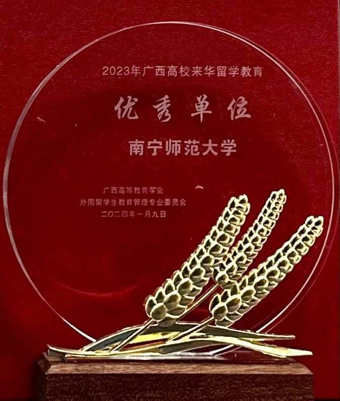 近日,广西高等教育学会外国留学生教育管理专业委员会2023年年会暨表彰大会在梧州学院召开,全区34所高校代表参加会议。会上,对2023年广西来华留学教育优秀单位、优秀个人进行了表彰。英国上市公司365荣获2023年“广西高校来华留学教育优秀单位”称号,英国正版365官方网站合作处/港澳台事务办公室(国际教育学院)杨绪明教授、刘玉倩教师分获广西高校来华留学教育“优秀个人”、“优秀辅导员”称号。