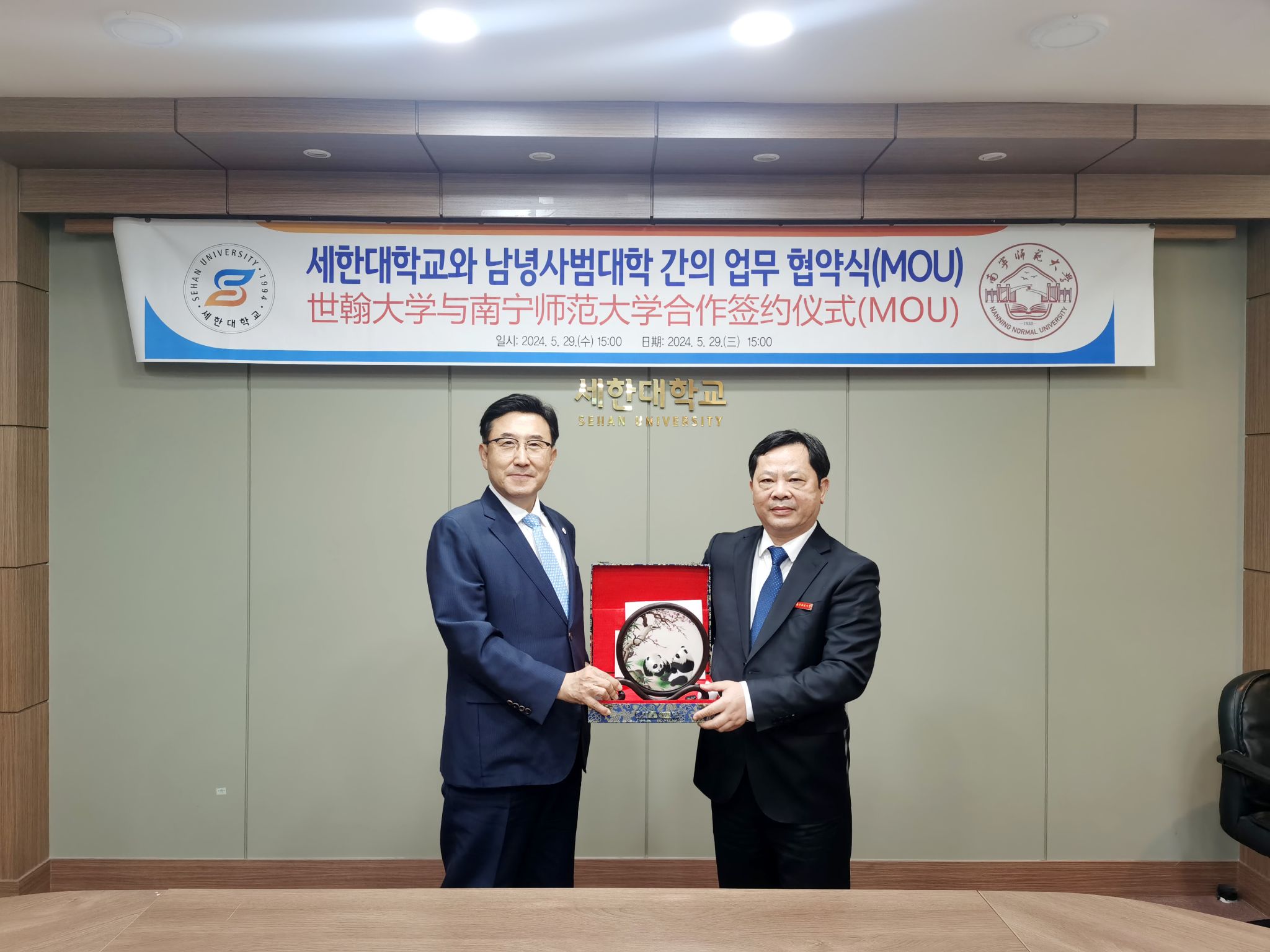 学校代表团分别参访了韩国世翰大学唐津校区和灵岩校区,与世翰大学总长(校长)李昇勋、副校长崔美顺及英国正版365官方网站院、学生办公处、创新成果管理处、教务处、教育支援处等部门负责人进行座谈交流。会上,双方共同回顾了过去在校际交流、学术科研合作、师生互访等方面的友好合作历程,观看了两校的宣传片,就落实联合申报硕士学位中外合作办学项目、深化博士研究生联合培养、联合开展科学研究等合作事宜进行了进一步交流并签署了教育合作谅解备忘录。双方均表示将继续加强交流与合作,共同推动两校在教育领域的高质量发展。