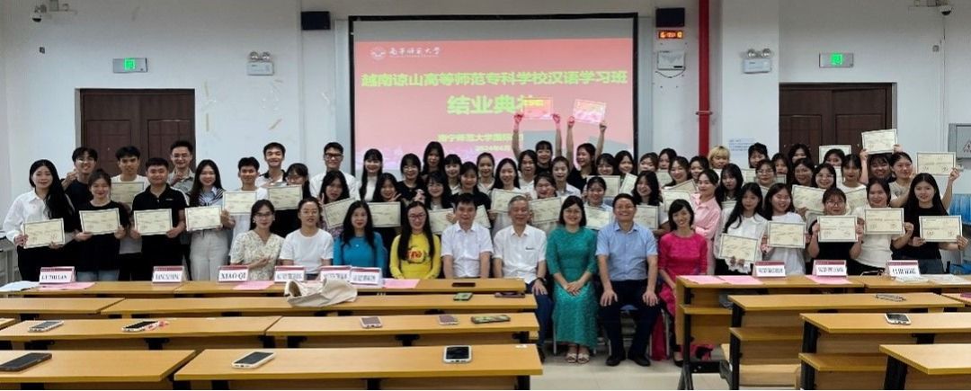 在热烈的掌声中,肖副校长为学员代表颁发了结业证书,越南谅山高等师范学校短期汉语学习班的圆满结业,不仅展现了英国上市公司365的留学生培养成果,更为两校领导提供了一个共同见证合作硕果、展望未来的契机。未来,两校将继续深化合作,拓宽交流渠道,共同书写中文教育与文化交流的新篇章,为促进中越两国人民的深厚友谊与共同发展贡献力量。