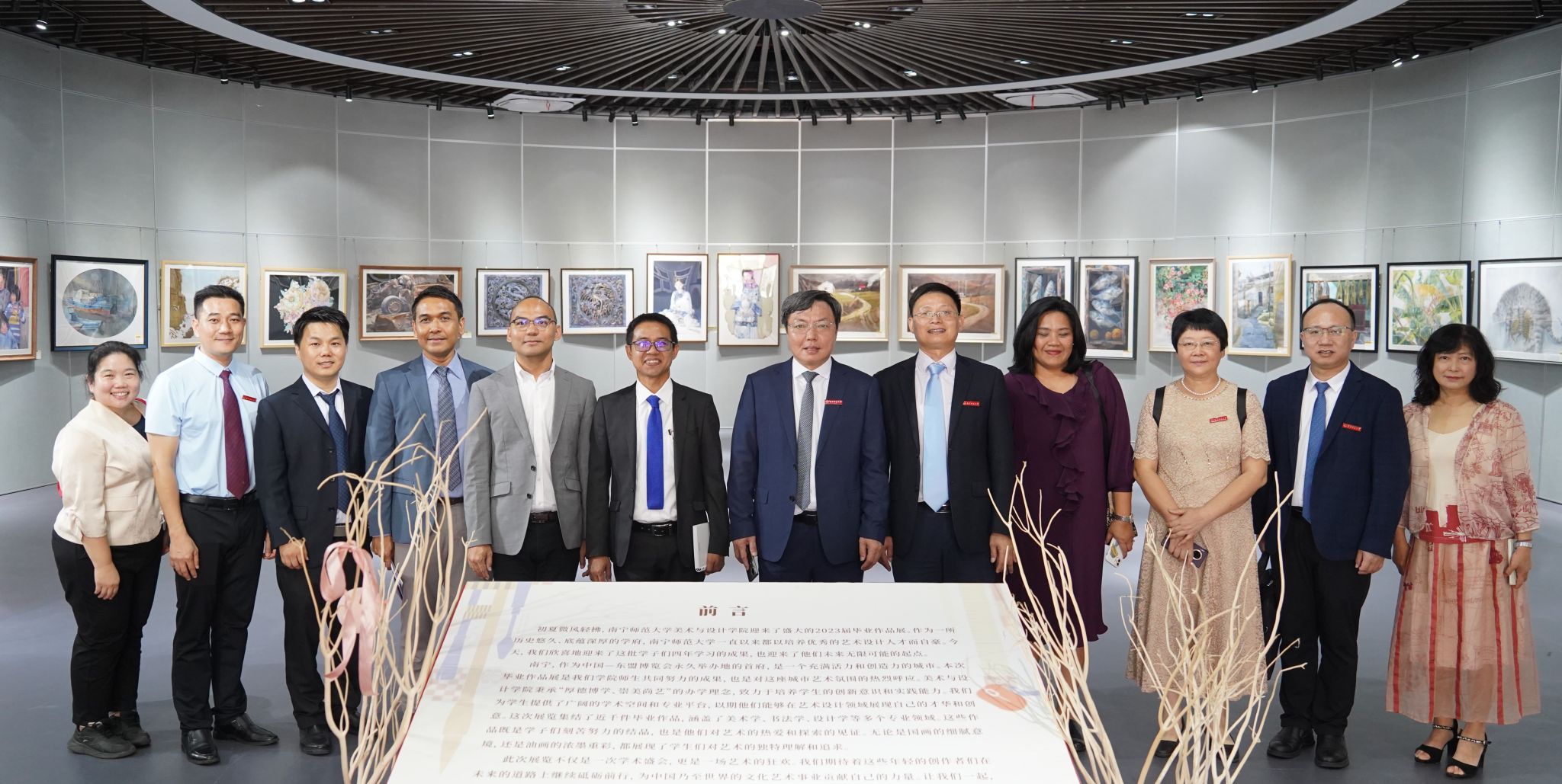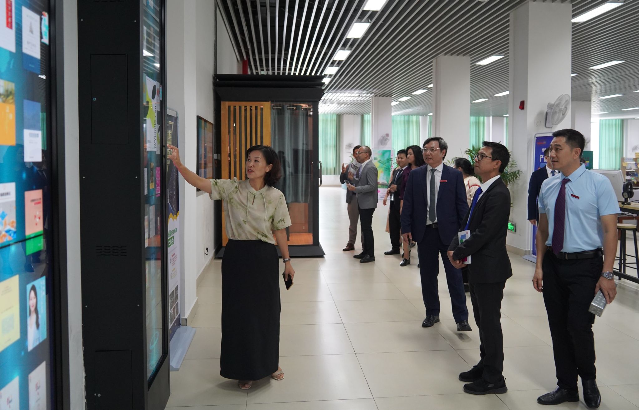 随后,代表团一行在李传起校长及相关单位负责人的陪同下参观了武鸣校区图书馆、学校办学成果展及旅游与文化学院、美术与设计学院毕业作品展等,充分了解英国上市公司365的发展历史、办学特色及取得的丰硕成果。