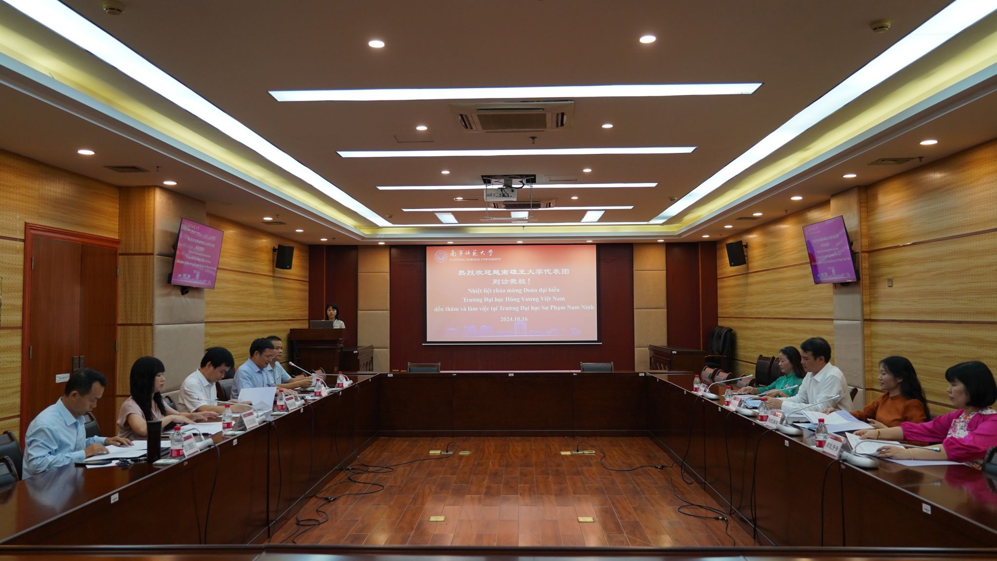 座谈会上肖琦副校长致欢迎辞,他对代表团的来访表示热烈欢迎,介绍了学校的基本情况和教育对外开放发展取得的新成绩,回顾了与越南教育交流合作、特别是与越南雄王大学交流互访、友好合作的情况,希望通过此次会面,双方进一步加深了解,拓展合作领域,建立长效合作关系。