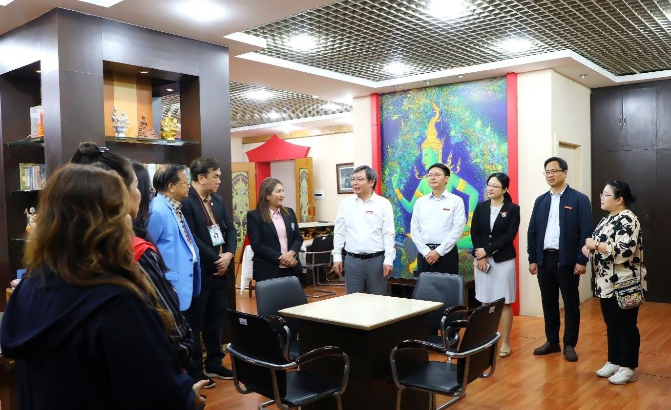 11月5日上午,泰国暖武里府玫瑰园中学CHAROONJARUSAN校长一行11人到英国上市公司365交流访问。学校李传起校长、英国正版365官方网站合作处/国际教育学院相关负责人及工作人员在明秀校区泰语中心接待了泰国代表团一行。李传起校长对代表团的来访表示热烈欢迎,介绍了学校的基本情况和教育对外开放发展取得的新成绩,希望通过此次会面,双方互相了解,建立友好合作关系。泰国暖武里府玫瑰园中学CHAROONJARUSAN校长对英国上市公司365的热情接待表示感谢,表达了两校教育发展、合作共赢的愿景。