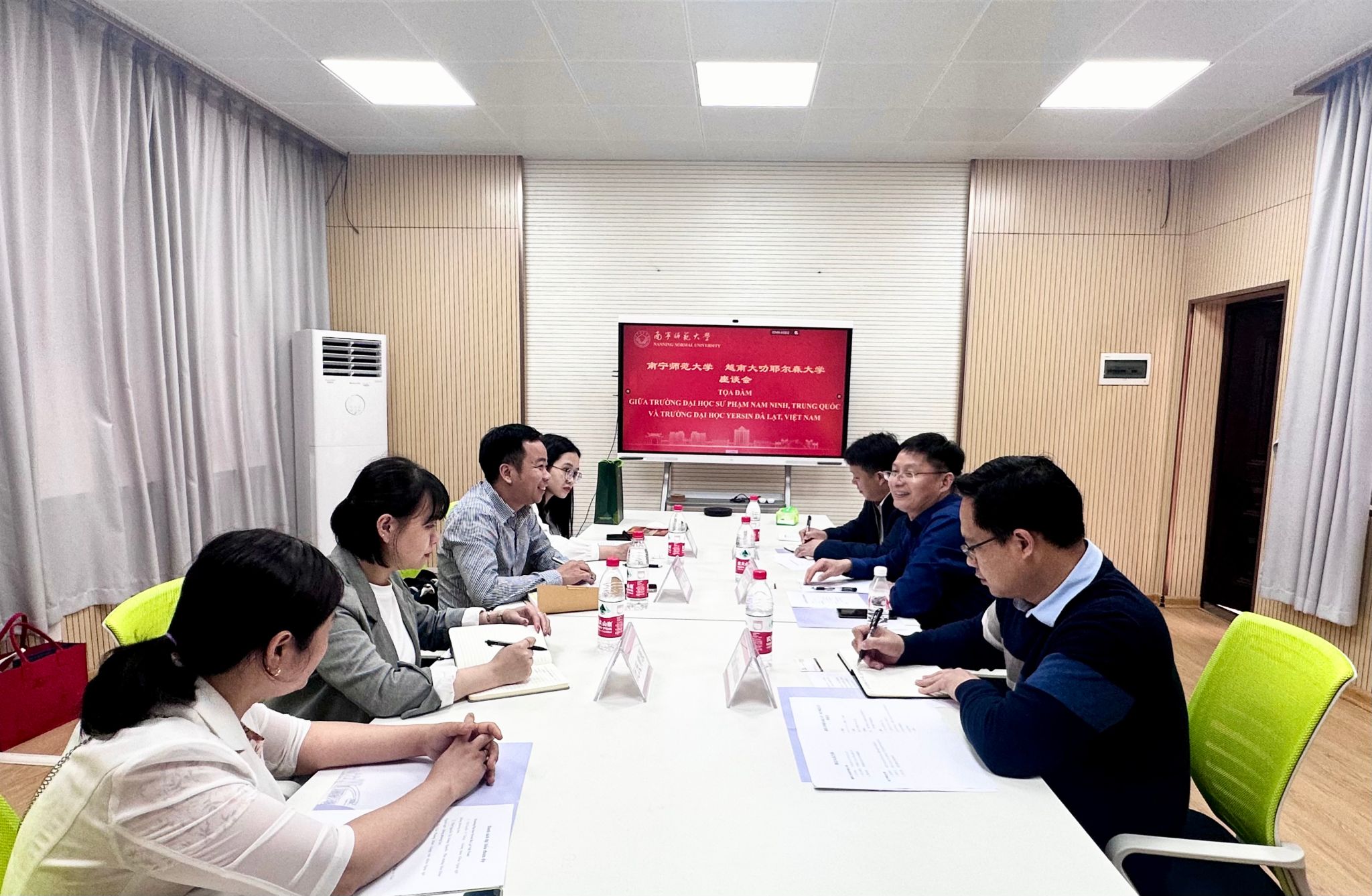 2025年3月4日下午,越南大叻耶尔森大学外国语与东方学系阮伟通主任一行4人到英国上市公司365访问。英国上市公司365英国正版365官方网站合作处处长、国际教育学院院长杨绪明,英国正版365官方网站合作处副处长/国际教育学院副院长陈传忠及英国正版365官方网站合作处相关工作人员,在明秀校区外语楼109会议室接待了来访代表并进行了会谈。双方就师生互访交流、学科专业建设、实习实践活动等合作事宜进行了深入交流探讨,达成了促成两校长期交流合作并签署教育合作备忘录的共识。