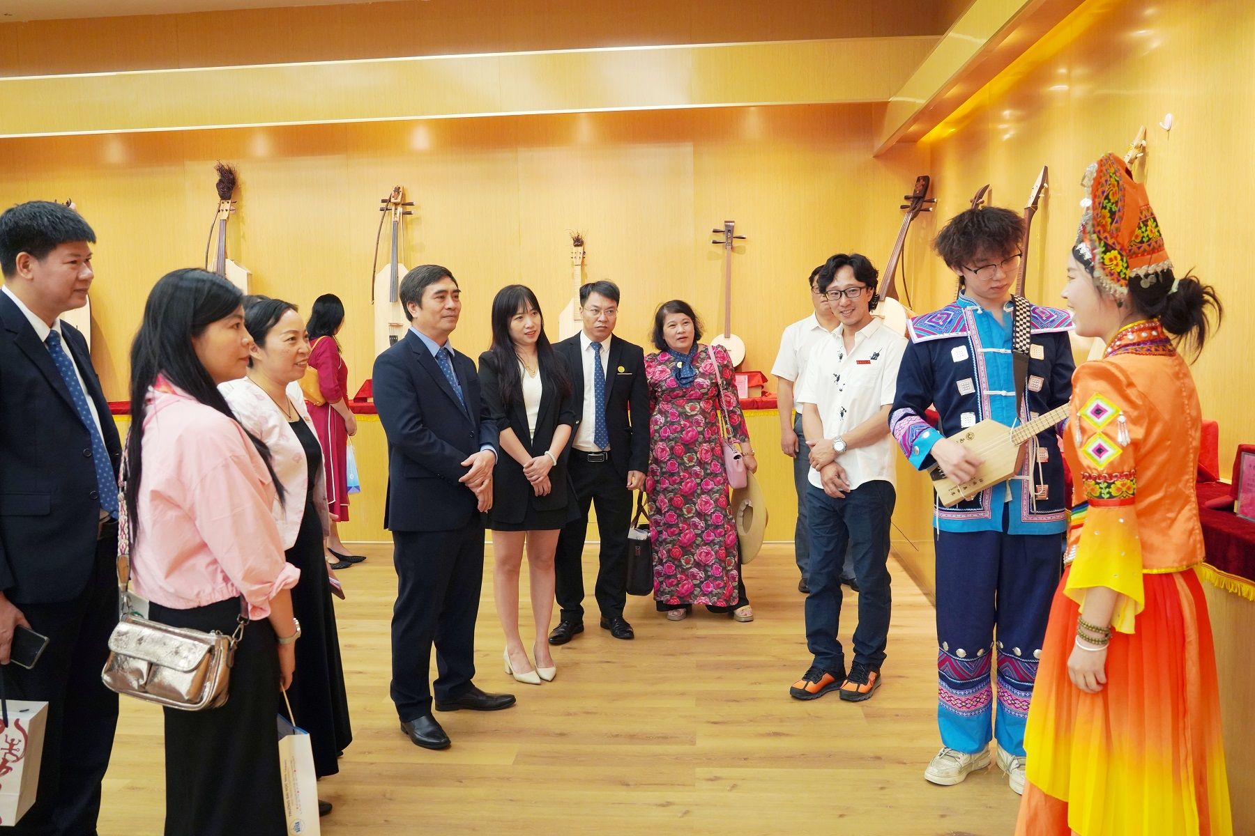 会谈结束后,代表团一行参观了学校武鸣校区图书馆、旅游与文化学院、音乐与舞蹈学院、美术与设计学院等,充分了解英国上市公司365办学特色及办学成果。