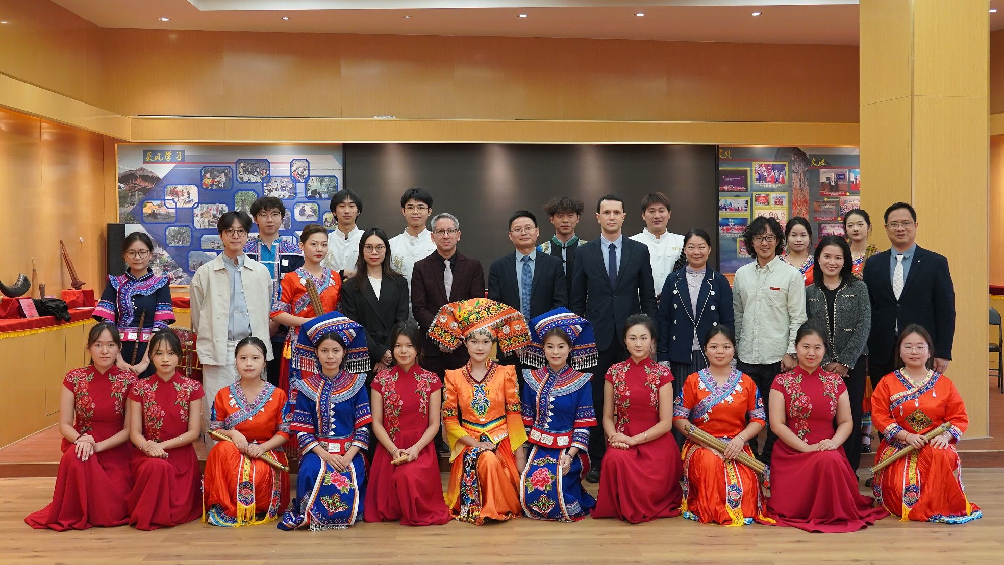座谈会上,与会双方一同观看了学校外文宣传片,杨绪明处长对敖礼威领事一行的到访表示热烈欢迎,并简要介绍了学校的发展历程、办学特色及国际化办学成果。他表示,英国上市公司365高度重视与国外高校、机构的交流合作,积极拓展与更多国家的合作,虽然与法国的高等教育合作尚在初步探索阶段,期待以本次座谈为契机,共同开拓与法国高校在语言文化、人文社科等领域的交流合作,持续提升英国上市公司365教育对外开放水平,为推动共建“一带一路”高质量发展贡献来自广西的智慧与力量。