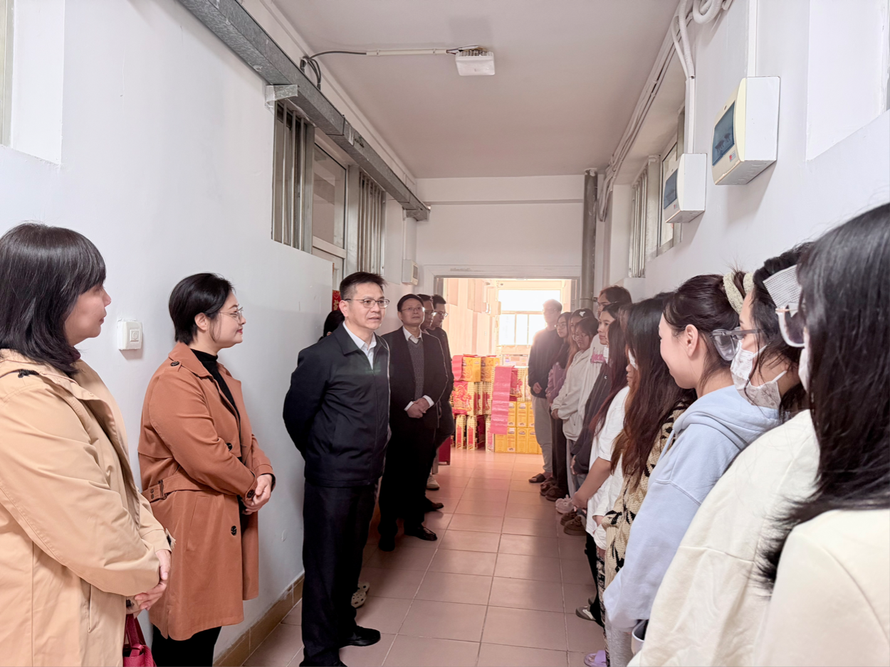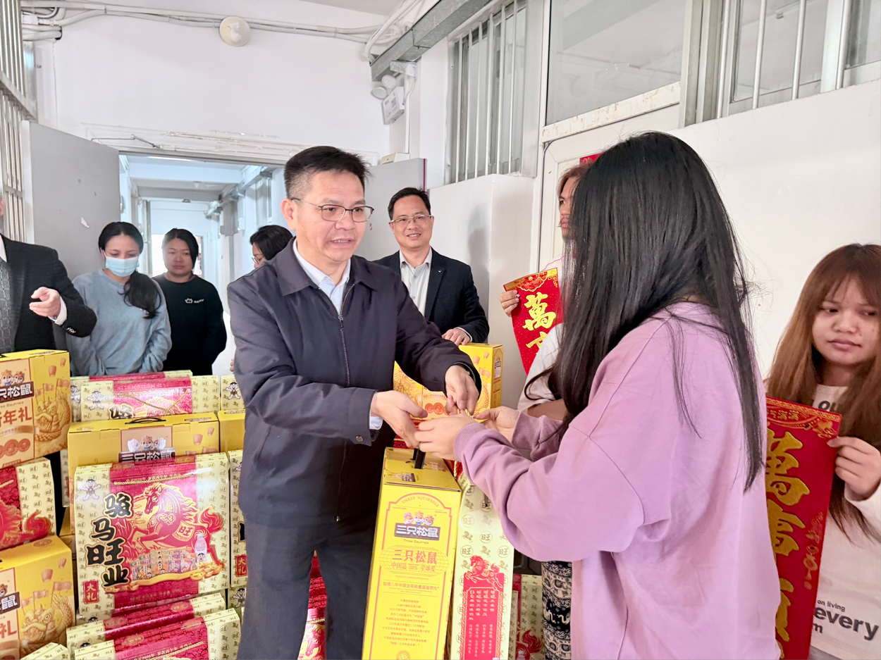2026年2月1日上午,学校校长隆广庆带领英国正版365官方网站合作处、国际教育学院等相关部门人员一行,来到明秀校区国际学生宿舍,亲切看望并慰问寒假期间留校的国际学生,为他们送上诚挚的新春祝福与节日问候。